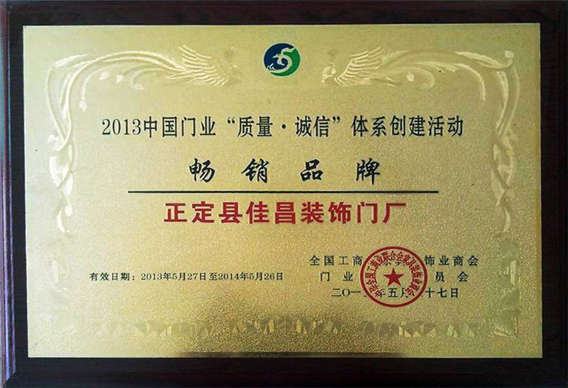 畅销品牌证书